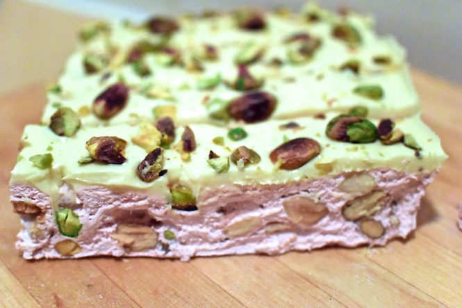 - Smält choklad och bred över nougaten, krossa ytterligare lite nötter och strö ovanpå.