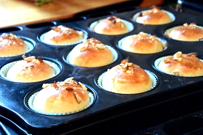- Lägg i en bullform och i en muffinsplåt om du har (hjälper till med så att bullen jäser på höjden)