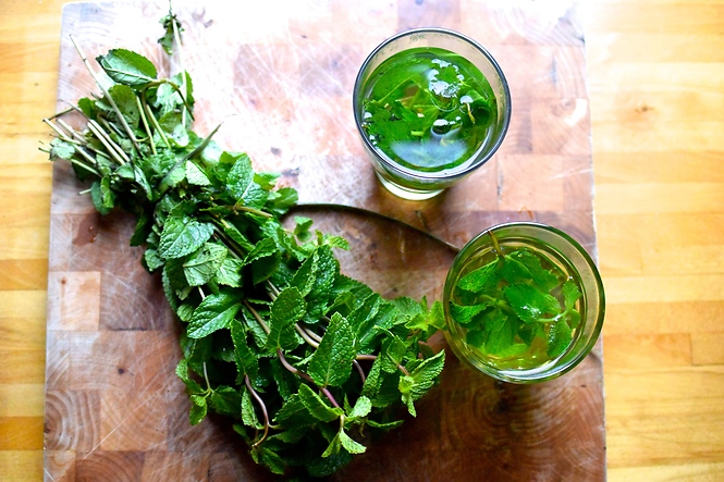 Nuförtiden tar jag alltid för vana att köpa med mig en bunt mynta när jag är på marknaden (kostar bara 50 cent), så har jag té för resten av veckan. Det är riktigt gott att göra desamma med en skiva färsk ingefära och citron, variationerna är oändliga. Söta med lite rå honung och så fungerar téet också jättebra som immunförsvarsboost, perfekt såhär på hösten.