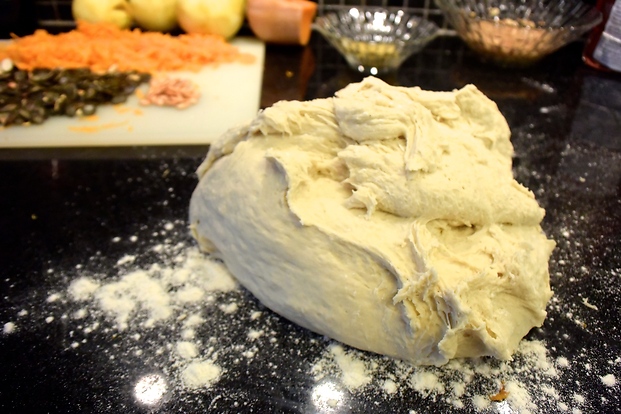 När degen känns riktigt elastisk, själp upp den på bakbordet och tryck ut.