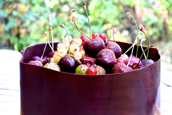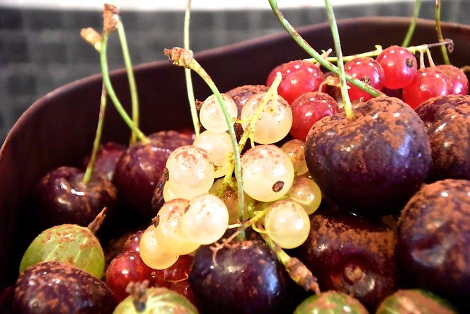 Just nu är det full bärsäsong i trädgården, så släng på det som mognat i din trädgård. Jag slog till på lite vinbär och krusbär här för att komplettera körsbären.
