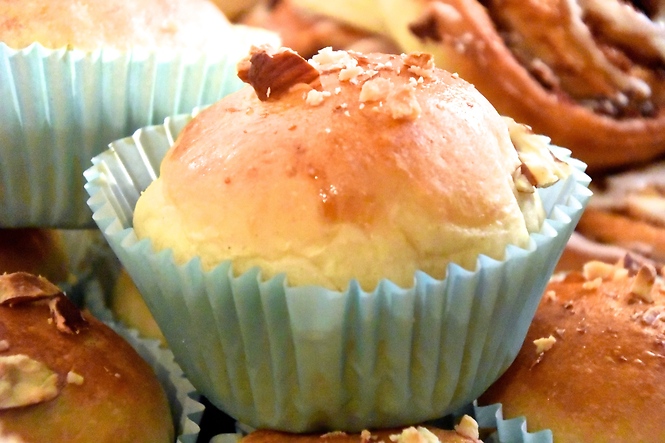- Lägg i en bullform och i en muffinsplåt om du har (hjälper till med så att bullen jäser på höjden)