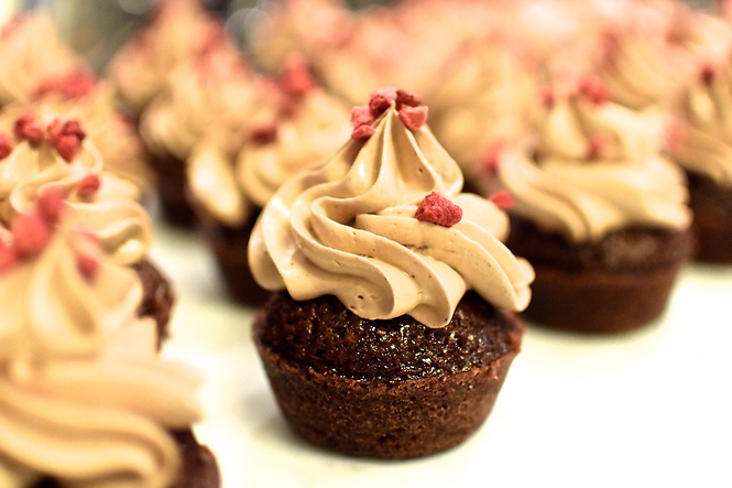 Det här är små chokladcupcakes med chokladmarängsmörkräm. Grunden är gjord på choklad och kaffe, och är precis lagom söt, lagom saftig och lagom storlek. Helt perfekta små söta snacks till bjudningen eller bara för en själv när man vill ha något litet men gott till kaffet.