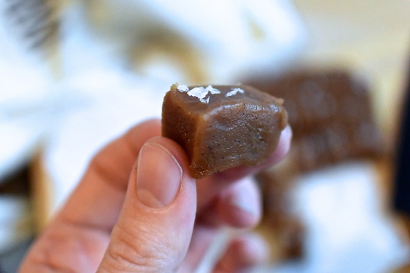 - Häll fudgen i formen, strö över resten av flingsaltet och låt stelna i rumstemperatur, minst en timme.